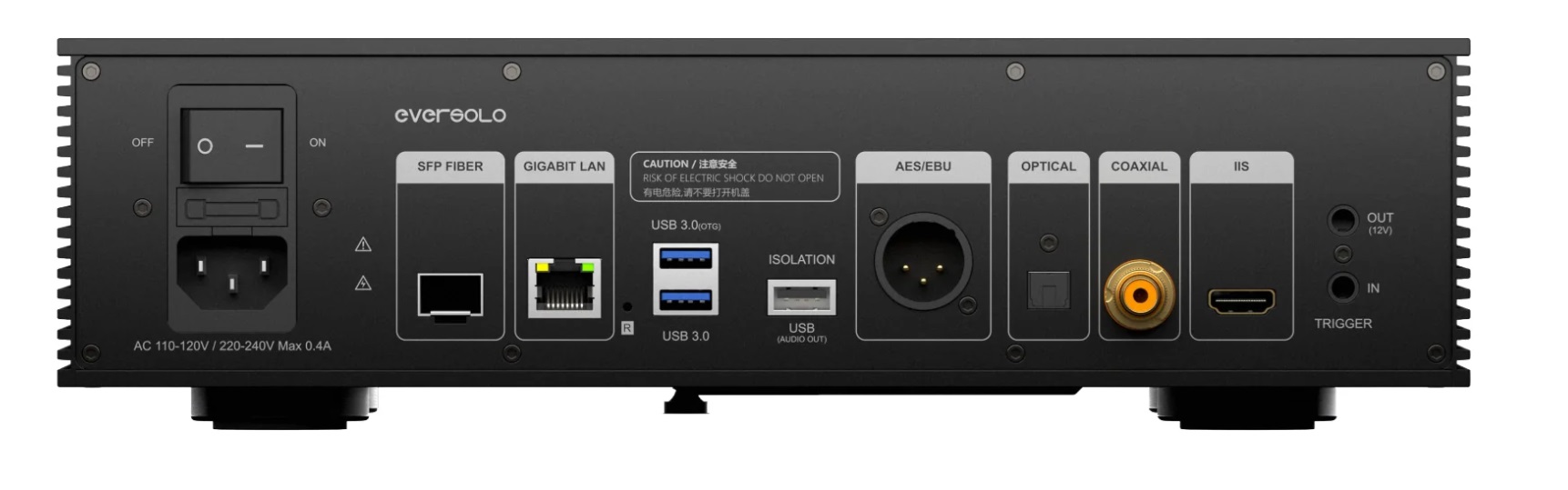 • Saídas digitais isoladas : as saídas IIS, AES/EBU, USB e coaxial eliminam a diafonia e a interferência, garantindo uma transmissão de sinal pura.